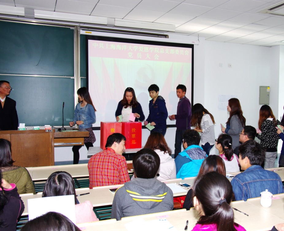 4月15日下午,中共上海海洋大学爱恩学院总支部委员会党员大会在5101教室召开。校党委组织部副部长韩振芳同志莅临指导,学院党外人士、预备党员、入党积极分子代表列席会议。会议由院团委书记林捷敏主持。