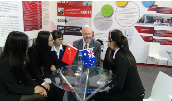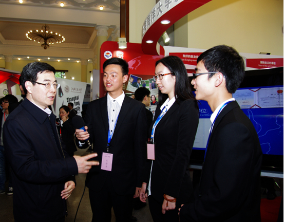 4月12日,澳大利亚驻华大使馆Christopher Lawson前来我院展台参观,接受了我院学生代表龙思曲同学的采访,和五位学生进行了一个长达15分钟的交流,回答了学生提出的有关问题。