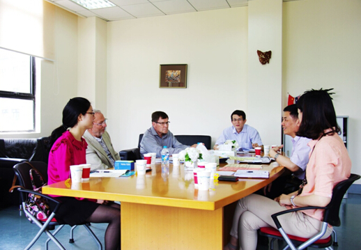 上午,常务副院长王基组教授和副院长王娜女士向来宾们介绍学院的办学特色、学生培养模式及培养效果和希望开展合作的模式及专业。Peltsverger院长介绍了目前与海大开展合作的模式以及美国移民局最新出台的关于外国留学生的政策,他欢迎我方提出合作办学的思路及要求,他们将带回去讨论有关具体措施。