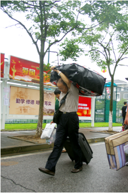 “慈母手中线,游子身上衣。临行密密缝, 意恐迟迟归。”父母亲人对孩子的爱护一直都是如此的无微不至。在报道现场,到处可以看见身上已经背着大包小包的行李却还是想接过孩子手中的包裹,唯恐孩子太过劳累的父母;随处可以看见自己站立在雨中等待却让孩子撑着雨伞的父母。那从父母身上滚落的雨滴、汗珠饱含着他们对孩子们的爱护!