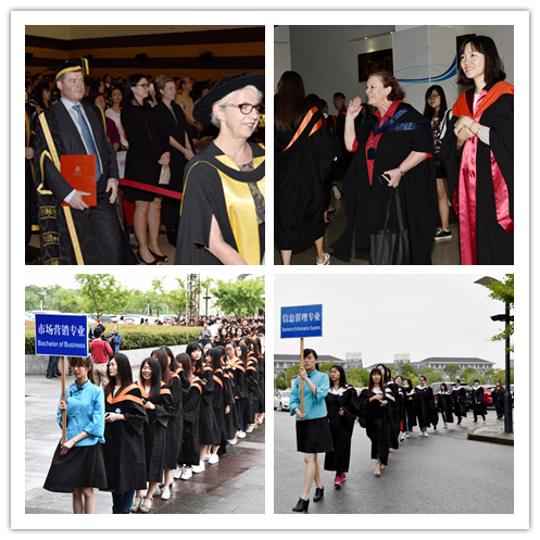塔斯马尼亚大学学术委员会主席戴安娜?尼科尔教授宣布授予信息系统学士学位、商学士学位、管理学学士学位的学生名单,爱恩学院院长王基组教授和副院长王娜分别宣读了“市场营销”和“信息管理与信息系统”两个专业的毕业生名单。程校长和菲尔德主席为走上台的每一个毕业生授礼拨穗,握手祝贺。毕业生们手捧证书,兴奋与感激之情溢于言表。这不仅是对他们四年刻苦学习和实践锻炼的肯定,更寄托着母校对他们的殷切关注和无限的希望。