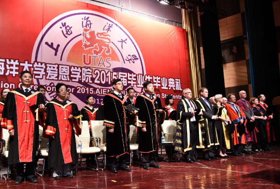 7月8日上午,上海海洋大学爱恩学院2015届毕业生毕业典礼隆重举行。校党委书记吴嘉敏、校长程裕东、塔斯马尼亚大学校务委员会主席迈克尔·菲尔德、校长彼得·拉思詹、学术委员会主席戴安娜·尼科尔等出席毕业典礼。爱恩学院名誉院长孙行佳、院长王基组,塔大商业经济学院副院长盖里·奥多诺万、科技工程学院执行院长克莱夫·鲍尔多克、商业经济学院副院长梅莉·乔伊斯、科技工程学院副院长朱力安·多默迪、塔大校友会主席阿什利·汤森德等出席了毕业典礼。典礼由副校长吴建农教授主持。