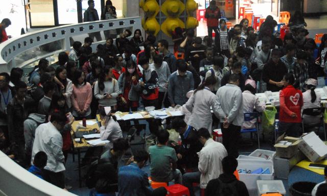 为弘扬“奉献、友爱、互助、进步”的志愿精神,2015年10月26-28日上海海洋大学大学生活动中心开展了由上海血液中心和上海海洋大学红十字会共同举办的“2015年度上海海洋大学无偿献血活动”。在学校的号召下,我院学生积极相应学校号召,参加志愿无偿献血活动。