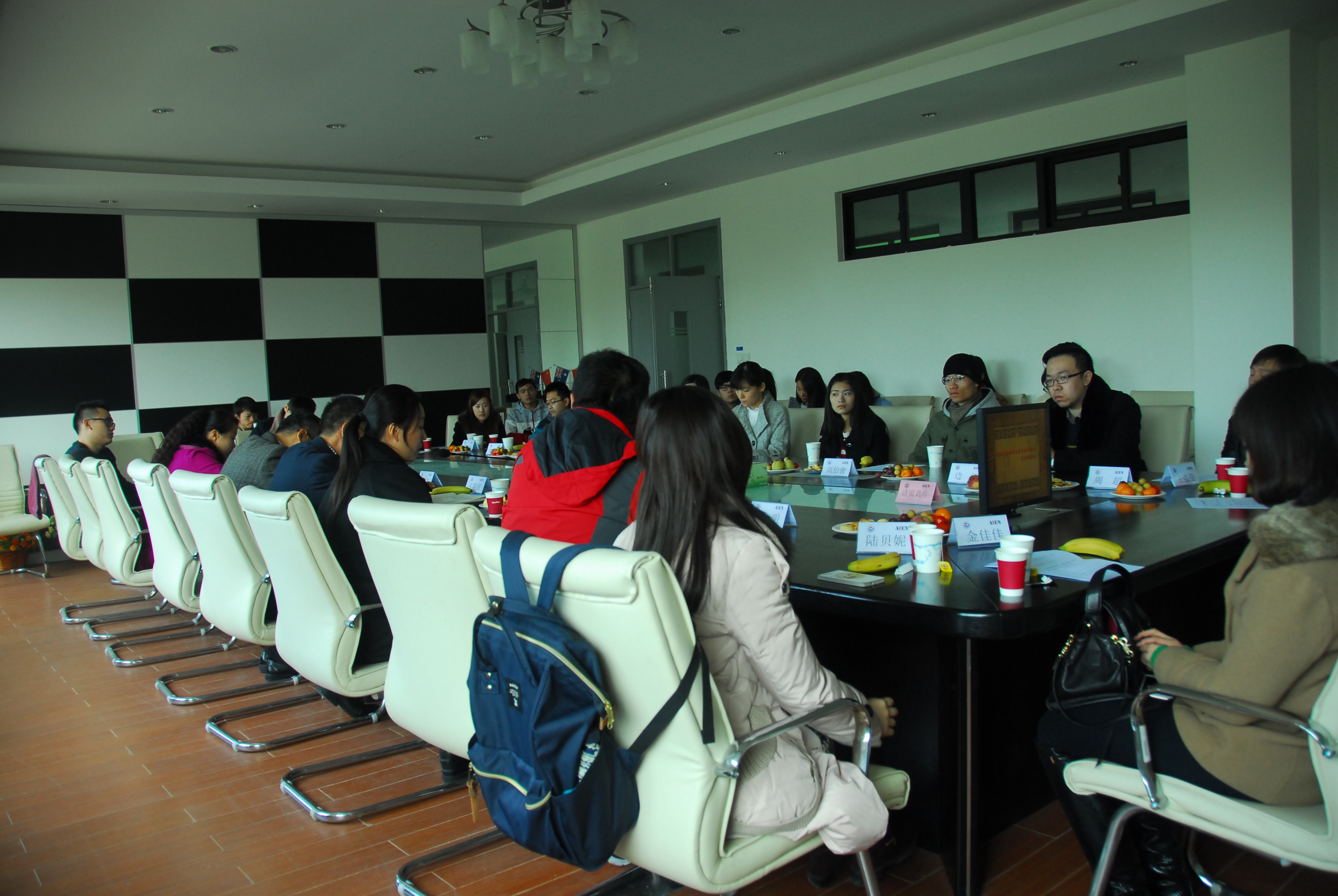 上午九点,与会人员在爱恩学院楼112会议室举行了师生见面会。会中,王院长向校友们介绍了爱恩学院近年来的发展情况,包括人员变更以及近年来爱恩学院取得的优异成绩。其中,特别提到了爱恩学院毕业生的就业问题。今年爱恩学院毕业生就业率达到了99.25%,其中三分之一的同学选择出国深造或国内考研。他又简单介绍了爱恩学院申请的由上海市教育评估协会进行的两个合作办学项目认证情况。