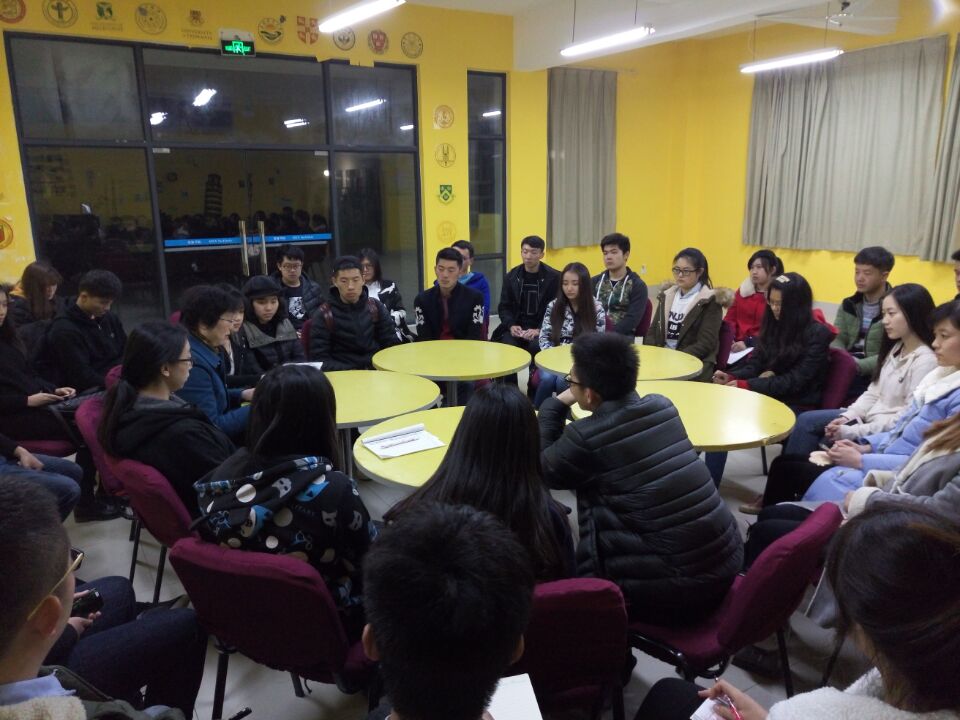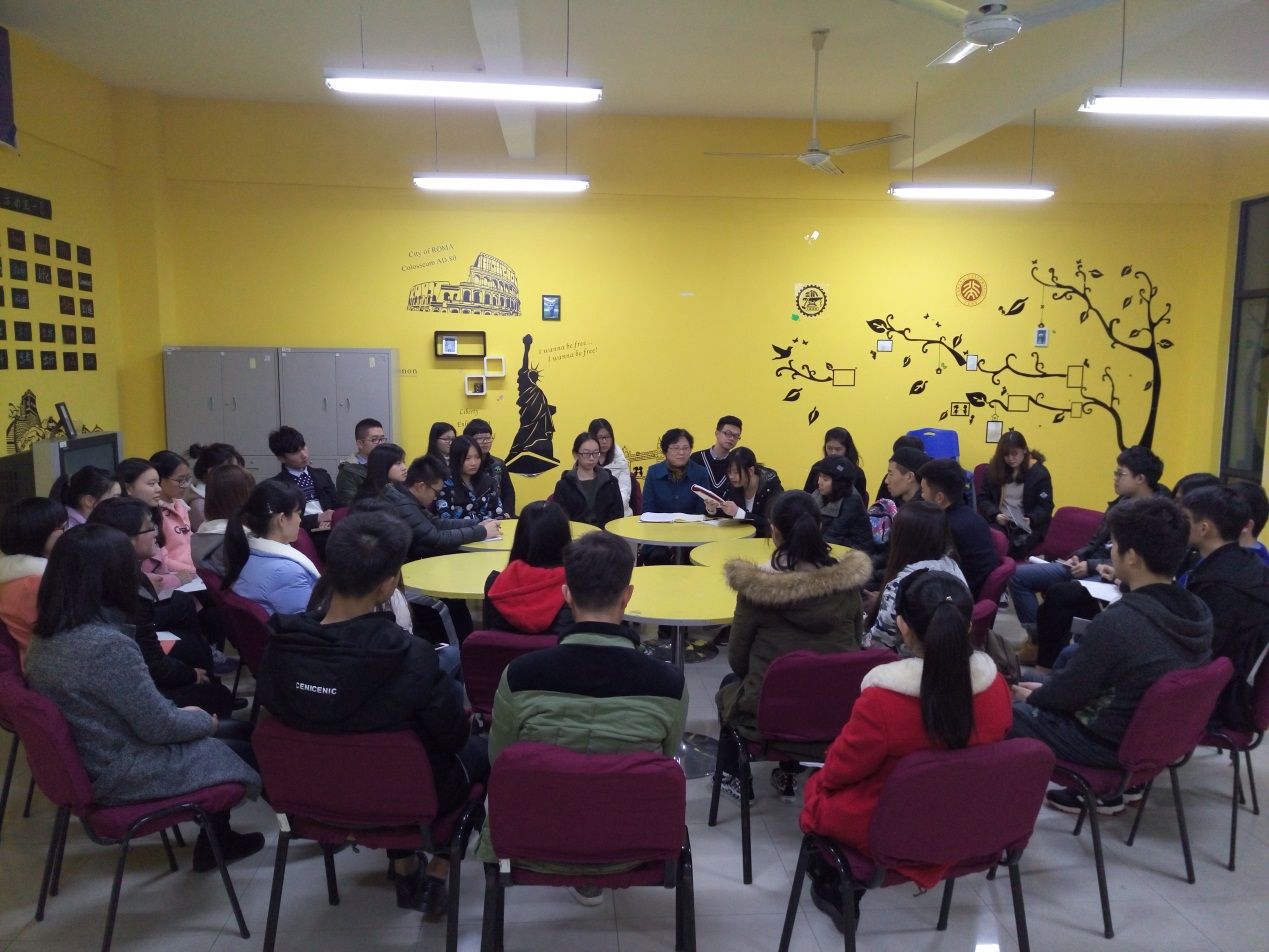 爱恩学院党员示范队在2016年3月3日晚位于第七小区活动室召开交流会,参会人员有社区辅导员丁蓉蓉老师以及全体2013、2014、2015级党员和入党积极分子。会议内容主要包括:1.2016年度党员示范队的成立;2.新党章学习交流;3.布置安排本学期党员示范队工作计划。