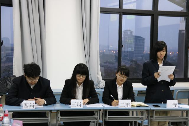 市营二班和市营四班的辩论题目为“中华文化重在传承/创新”。正方市营二班从定义“传承”和“重在”两词入手,再由弘扬中华文化、保护濒危非物质文化遗产、培养年轻人民族自豪感这三点层层推进,深入分析了传统文化需要传承的原因。在辩论中举出生活实例配合论点加强其说服力,加以一辩洪亮有力的声音,大大增强了正方的气势。而反方市营四班一辩十分老练,在发言时切中了正方言语中的漏洞并辅以己方的观点加以论述,在一开始对正方就构成了不小的威胁。反方从文化创新推动时代进步这一观点展开,挖掘了传统文化创新的核心,论述了中华传统文化创新的重要性。反方抓住对方漏洞,对辩题进行了深入思考,在辩论过程中逐渐压制了对方,最终获得了胜利。辩论过程中,正方一辩思路清晰,反应敏捷,被评为全场“最佳辩手”。市营三班和信管一班以“现代化会/不会威胁传统文化的生存”为题展开激烈辩论。正方市营三班依托生活中的大量实例,从古建筑、文学、戏曲等各个角度进行分析,从大量实例中,正方一步步推出现代化会对传统文化形成威胁这一结论。反方信管一班以“现代化是对传统文化的再次发展”这一中心思想作为基础进行发散思考,深入思考至人的主观意识这一层面,立论十分精彩。在攻辩和自由辩论阶段现场进入了白热化,双方彼此向对方抛出问题并都给予了犀利的答复,你来我往,唇枪舌战十分精彩。在辩论的最后,市营三班凭借着充分的例证和严密的逻辑取得了胜利。而反方的一辩因表现优异,积极发言获得了本场的“最佳辩手”。
