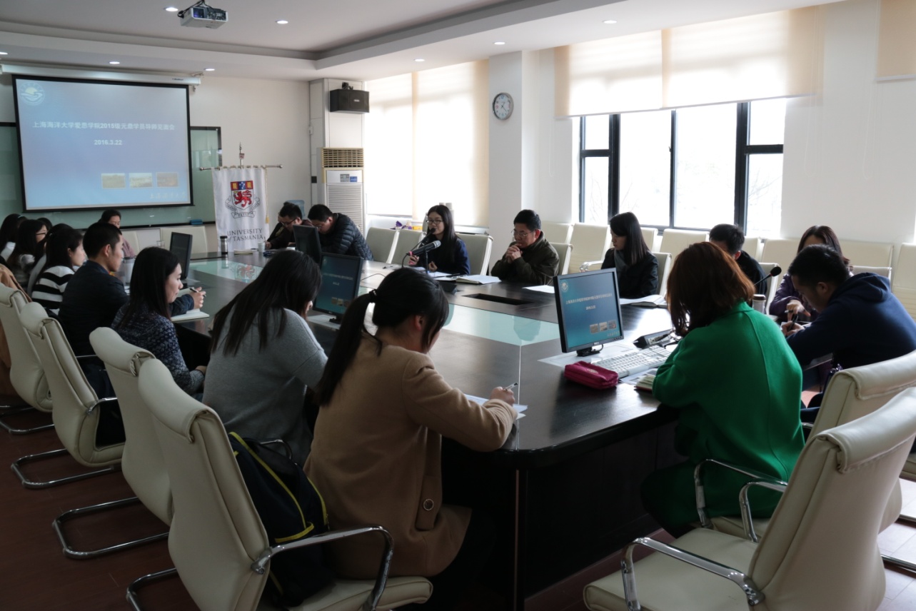 2016年3月22日下午一时,在爱恩学院112教室召开了上海海洋大学爱恩学院2015级元鼎学员导师见面会。会议由爱恩学院马春广老师主持,元鼎学院2015级全体学员和导师均出席此次见面会。