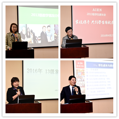 王娜副院长就2013级教学情况、修业收获和大四学业安排进行了详细的讲解。王娜副院长强调,孩子们即将踏入大四,但本学期学业任务依然很重,不能松懈。同时,王娜副院长指出,爱恩学院对孩子们的英语语言能力,国际化教学环境的熏陶和综合素质的养成投入很大,提供了很多机会和资源。