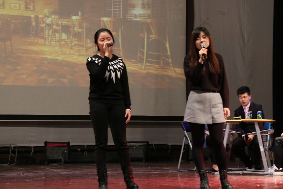 来自2015级信管1班的同学们在其后带来了唱跳俱佳的《珍惜现在》,可谓是带动了全场观众和评委们的气氛,与观众的互动也穿插其中,获得掌声不断。
