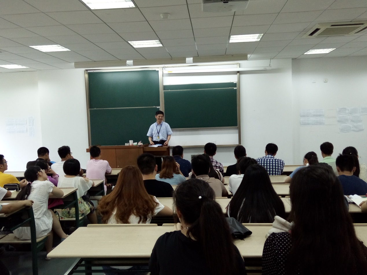 2016年6月17日14:40在爱恩学院5102教室举行2016级新生导生培训会。此次培训会由大一辅导员丁蓉蓉老师组织,爱恩学院院长王基组教授主讲,参与此次培训会议的是32名爱恩学院为2016级新生服务的导生。培训的主题是“如何当好一名导生”。