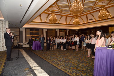 接着,塔斯马尼亚大学校务委员会主席迈克尔•菲尔德先生对校友的成就表示了肯定和祝贺,同时呼吁校友要与学校保持联系。此外,他还向校友提供机会了解当前大学发展和机遇。塔斯马尼亚大学全球战略副校长代理助理盖里•奥•多诺万教授和塔大商业与经济学院院长克里斯•厄尔利教授向2016届取得优异成绩的同学们表示了衷心的祝贺,并颁发奖品。然后,进入抽奖环节,两个形态娇憨的薰衣草小熊赠予了有缘之士。