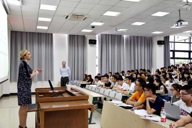 导向教育课根据不同专业分别在2101、2103两个教室展开,课程主讲为Dean Steer博士和Sarah Dawkins博士,同学们开始在老师的引导下深度接触塔大资源,了解专业课学习特点,重点学习了六套塔大导向教育材料中的Student and Staff Induction Manual一书,包括:塔大邮箱、塔大账户、塔大请假制度、塔大上课安排等做出了详细解释。虽然这堂课为时不长,但涵盖了非常全面的信息,使2015级学生对塔大学习特点有了比较清晰的概念,这为他们之后三年的学习生活打下了良好的基础。至此,上午的课程顺利结束。