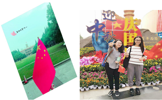 路过人群拥挤的街道,看见庆祝国庆的标志,大二的学子们更是兴冲冲地跑去与其拍照、合影。手中拿着小国旗,仿佛心里有一道光。它会照亮我们前行未知的路,会带给我们强大的力量,会在每一个困难时刻支撑着我们奋力向前!