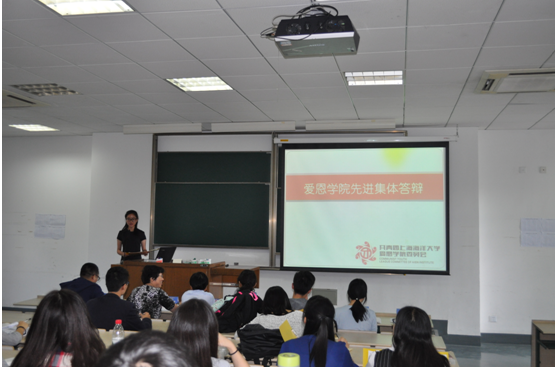2016年10月11日下午三点,上海海洋大学爱恩学院先进集体答辩会在5101教室举行。爱恩学院学工办副主任马春广老师、团委书记高晓丽老师、大一辅导员丁蓉蓉老师、大三辅导员郭虹老师、大四辅导员袁盈芳老师以及兼职辅导员谢天豪、熊丽君出席并担任评委。