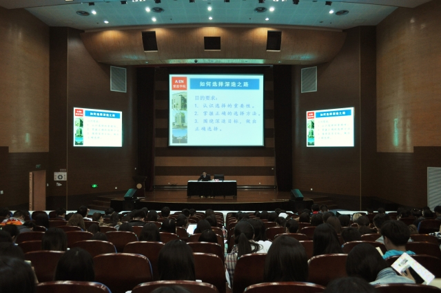 首先,王院长阐明了此次报告的目的:为了让同学们认识到选择深造之路的重要性,掌握正确的选择方法,帮助同学们围绕深造目标,做出正确选择。王院长指出选择的标准是要适合自己,选择的着眼点是未来的职业发展而不是与他人攀比。
