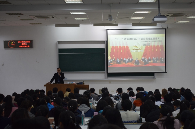为贯彻习近平总书记在七一讲话中的精神,2016年11月22日下午一时, 2016级信息管理与信息系统专业全体学生于1201教室进行了关于“七一”讲话精神的形势与政策课,课程由刘智斌副教授主讲。