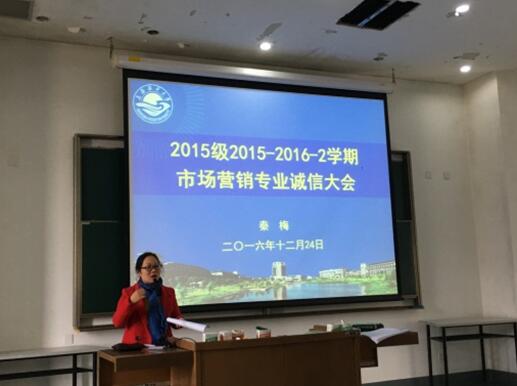 期末考试将近,为强调诚信考试的重要性,激励同学们积极备考,爱恩学院大二辅导员秦梅、兼职辅导员谢天豪分别于2016年12月14日中午和下午在爱恩学院楼5201教室分专业开展了诚信考试动员会。全体爱恩学院15级同学参与了本次大会。