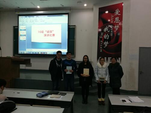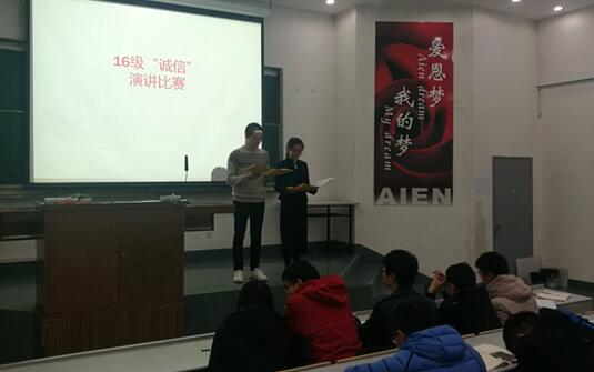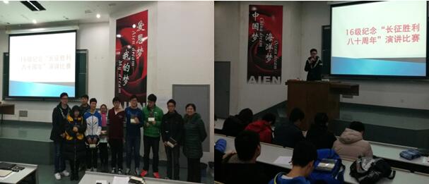 2016年12月15日晚18时,爱恩学院2016级“纪念长征胜利80周年”、“感恩”、“诚信”主题演讲比赛活动在5201教室举行。本次比赛的评委由爱恩团委部长们担任,大一年级辅导员丁蓉蓉老师、兼职辅导员谢天豪老师也作为嘉宾出席了比赛现场。