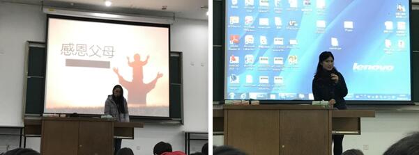 接下来进入本次演讲比赛的第二篇章:感恩。感恩是一种对生活的热爱,一个对生活心怀感恩的人能够以积极的心态面对人生。感恩是一个永恒的话题,同学们对于感恩也有着不同的诠释。在演讲选手生动而富有感染力的演讲过程中,同学们深有感触。他们的演讲也提醒了同学们,对于父母和老师,对于给予自己帮助的人,对于竞争对手,应时刻心怀感恩。我们需要真正地将这感恩的品德践行到生活之中。我们弘扬传统美德,更要在生活的每个细节中体现这种美德。从我们大学生自身做起,将“感恩”这一中华传统美德,践行到生活中,感恩身边人、身边事、身边物,感恩我们所拥有的一切。