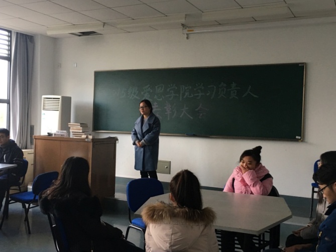会议的第二项议程,由秦梅老师及谢天豪老师共同为学习负责人们颁发聘书并发放奖品。在此过程中,秦梅老师介绍了每一位学习负责人的负责项目及突出贡献,对其为2015级学风建设做出的贡献表示感谢。同学们也同样为自己能够担任学习负责人而感到自豪,表示愿与同学们一起努力,共同进步。