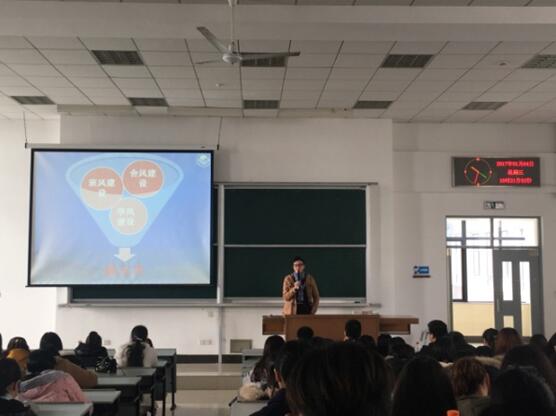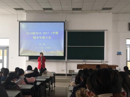 转眼间,一学期的紧张而又丰富的校园生活落下了帷幕,爱恩学院大二辅导员秦梅、兼职辅导员谢天豪于2017年1月6日下午在第一教学楼1203教室举办了“2015级2016-2017-1学期期末年级大会”,共同回首本学期在学习、活动和班级建设方面的风采,同时对2017年的工作和学习进行展望。