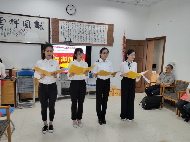 活动中,李杲结合习总书记给全国涉农高校的回信指出,上海海洋大学需要培养知农爱农型人才,坚决打好脱贫攻坚战,同时作为新时代中国青年,青年党员们必须要担起时代责任、有所作为。潘迎捷强调,在伟大祖国成立70周年之际,我们更要牢记初心、努力工作,把海大建设成受人尊敬、有竞争力的大学。赵颖熙朗诵自己所作长诗,抒发自己身为中国人的自豪感、身上肩负的使命感以及对党和人民深厚的感情。郭明朗诵七言诗,把自己对党和人民的感情融入在诗中。活动现场为中华人民共和国成立前参加革命工作的、健在的老战士老同志于兰欣、赵颖熙、郭明、徐筱蓉颁发“庆祝中华人民共和国成立70周年”纪念章。