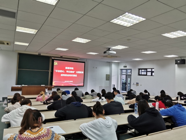 为扎实推进“不忘初心、牢记使命”主题教育,2019年11月6日,爱恩学院党委在5101教室开展主题教育应知应会知识测试。爱恩学院全体师生党员参加此次考试。