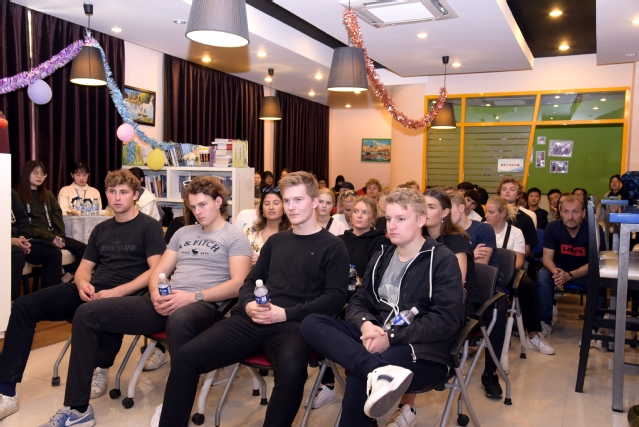 简短的学院情况介绍后,开始了爱恩学院部分学生与来访学生的一对一自由互动交流,目的是让我院学生获得更多的国际化体验。我院学生带领他们各自结对的学生,参观了学院有关教学场所。丹麦学生就我院中外办学形式和各类国际交流特色活动与我院学生展开热烈的讨论,丹麦随行教师也对我院的办学理念和教学成果表示充分的肯定。