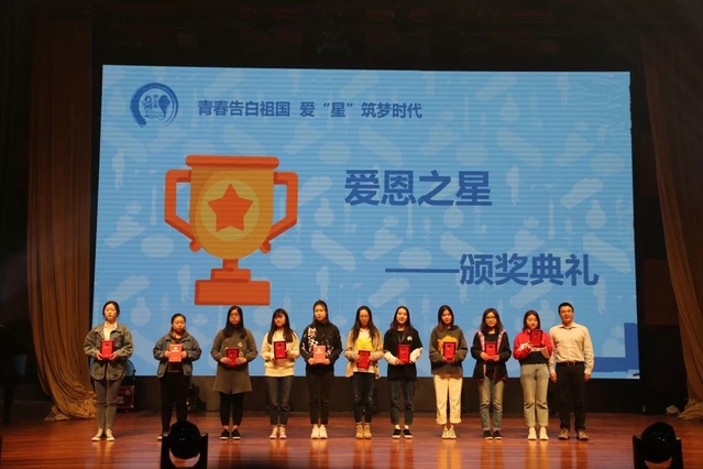 在晚会中,爱恩学院党委书记周辉为本届“爱恩之星”颁奖,分别是“军旅之星”获得者张梦怡、杨金辉。“爱心之星”获得者孙慧敏、聂铃语、陈芸洁、李子涵、兰海平。“学习之星”获得者李欣、纪星竹、魏至立、梁馨、徐晶菁、张慕洁。周辉书记为他们依次颁发荣誉证书,给予了他们最大的鼓励和肯定。