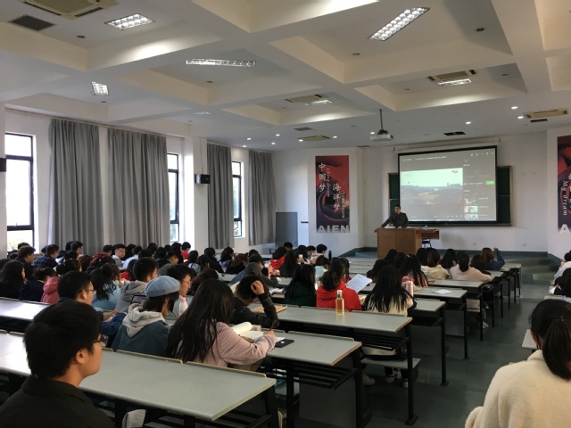 11月19日,爱恩学院党委书记周辉在5201教室给2019级市场营销专业同学上了一堂主题为“壮丽70年,奋斗新时代”的形势政策课。