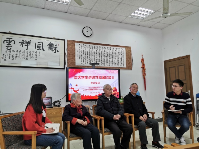 为扎实开展“不忘初心、牢记使命”主题教育,加强爱国主义教育,爱恩学院学生第一党支部与校离退休老干部老党员们于2019年11月29日下午在上海海洋大学军工路校区开展了“给大学生讲讲共和国的故事”主题党日活动。上海海洋大学原校党委书记叶骏,离休干部赵颖熙,原工程学院院长、教授章可畏,原人文学院教授黄中元,爱恩学院关工委副主任、特邀党建组织员徐男平,校老干部工作办公室常务副主任周京以及爱恩学院学生第一党支部全体党员共同参与了此次活动。
