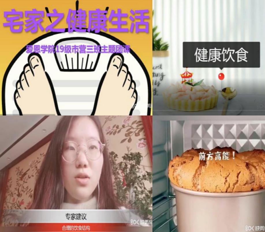 活动伊始,团支书周羽嘉简要介绍了“宅家之健康生活”微团课的组成部分:正确饮食、健康作息及加强运动。心理委员刘澄宇为同学们详细讲解了疫情期间合理膳食的相关知识。她提醒到,在这个特殊时间节点,保持合理的饮食结构相当重要,广大青年应确保每日高蛋白质、维生素的摄入,注意营养多样性,切忌暴饮暴食与过度节食。同时,为了减轻心理负担,使疫情期间的宅家生活变得多彩有趣,组织委员王之亦向大家介绍了蛋糕及其他可口零食的制作方法。