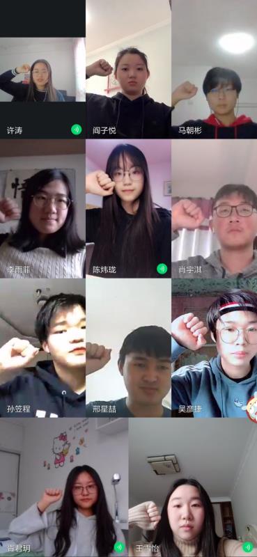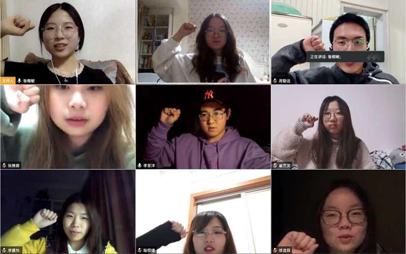 接着,参会人员积极分享自己在疫情防控期间开展线上学习、参与志愿活动的经历与感受。2019级市营1班张钟予在连线中有感而发,“疫情期间,即使无法踏入美丽的海大校园,学校、学院所组织的线上活动仍时刻在我们身边,距离不曾遥远。”2018级市营2班熊含冰认为,作为一名95后当代大学生,能够积极向身边的家人和同学宣传防疫科普知识,尽全力配合社区和学校的安排,并力所能及地为老师和同学们提供帮助,便是青年力量的最好体现。“一代人有一代人的担当,在疫情面前,我将尽我所能,努力成为党的后备军和坚实力量!”2018级信管1班黄雅瑄坚定地说。