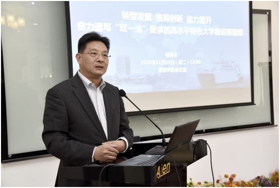11月3日下午,校长程裕东在爱恩学院112会议室,为爱恩学院全体教职员工作了主题为“转型发展、格局创新、能力提升,奋力谱写‘双一流’要求的高水平特色大学建设新篇章”的专题报告。报告会由爱恩学院党委书记周辉主持。