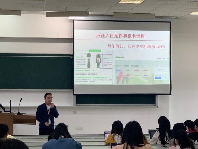 各年级辅导员集中学习征兵政策,通过征兵政策宣讲主题班会、国家安全教育日、国防教育以及就业启动会等方式对学生进行全覆盖宣传,确保每一位同学能够了解国家征兵政策;同时,根据学生的实际情况,辅导员进行一对一、点对点宣传动员,为有征兵意向的学生做好政策解读和答疑解惑。