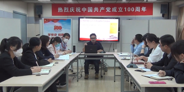 5月18日,爱恩学院教工党支部召开主题党日,支部书记讲党课,支部党员积极分享党史故事。