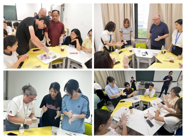最后的“巧手揉月饼香盈”——冰皮月饼制作为活动画上圆满的句号。师生们认真完成揉捏饼皮、称量馅料、包裹封口、压模成型等工序,在实践过程中感受月饼所蕴含的团圆寓意。