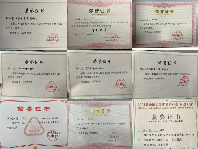 2021-2024年度 上海海洋大学人民奖学金一等奖6次